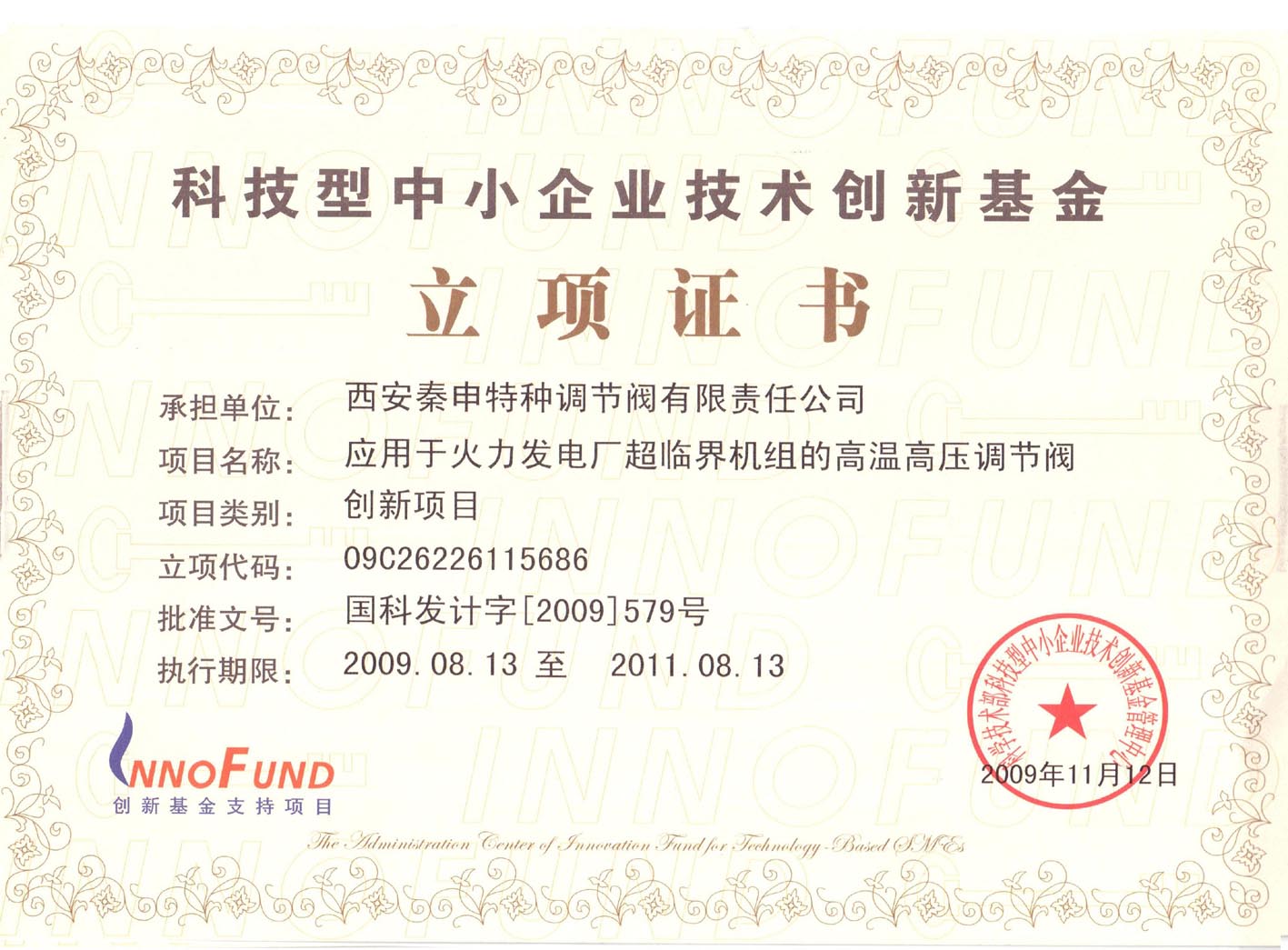 我公(gong)司《應用于火電(diàn)廠超臨界機組(zǔ)的高溫高壓調(diao)節閥》項目,于🔱二(èr)〇〇九年底榮獲國(guo)家科技部技術(shù)創新基金的重(zhòng)點支持,獲得了(le)近百萬元資金(jin)的無償資♈助。